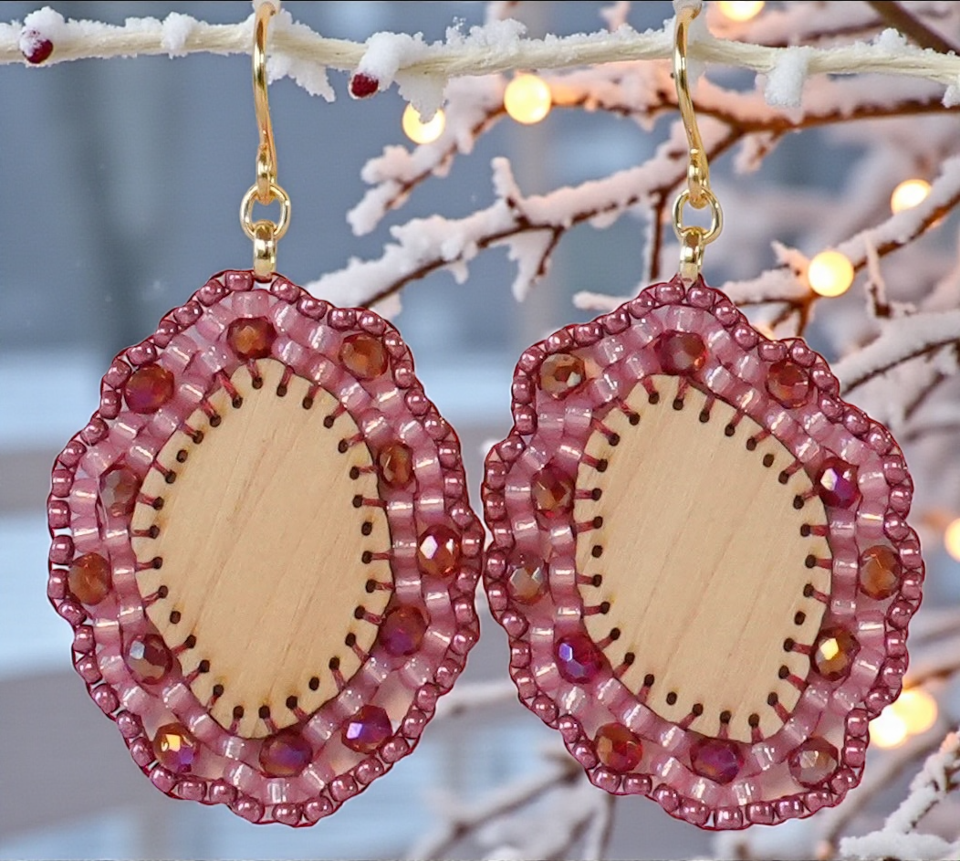 Hängeohrring mit Holzkern aus Zirbe und rotem Glasperlenrand